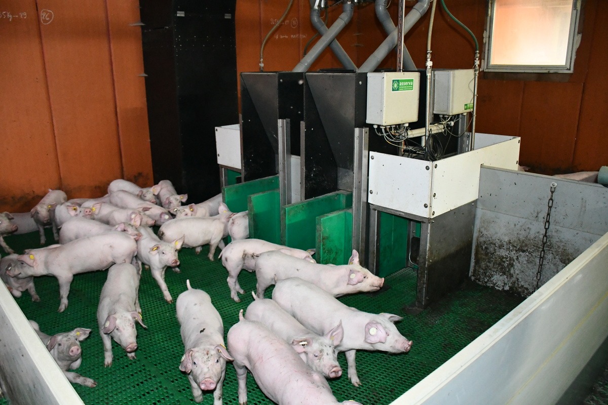 Toute l’alimentation est automatisée grâce à l’installation il y a 8 ans du système Optimat, d’Asserva. « La pesée et la préparation des repas sont adaptées à chaque nourrisseur qui alimente 2 cases. C’est un gain de précision sur l’alimentation mais aussi un gain de temps de travail », apprécie Jean-Charles Cantin. « Les aliments sont toujours frais et l’éleveur peut programmer autant de repas qu’il le souhaite », précise Grégoire Soulabaille, technico-commercial Asserva.