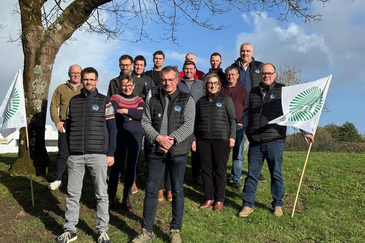 Franck Pellerin succède à Marie-André Luherne à la tête du syndicat majoritaire. Il est éleveur de porcs et de bovins au Val d’Oust, et producteur de biogaz. Au premier plan : Nicolas Chesnin (secrétaire général), Franck Pellerin, président). Second rang : Thierry Coué (membre du bureau), Valérie Courtois (membre du bureau), Sylvaine Dano (derrière Franck, trésorière), Marie-Andrée Luherne (3e vice-présidente), Pierre-Yves Le Bozec (1er vice-président). Troisième rang : Nicolas Le Blanc (membre du bureau), Thomas Guégan (2e vice-président), Gérard Hercouët (membre du bureau). Quatrième rang : Fabien Luherne (secrétaire général adjoint), Stéphane Le Goff (membre du bureau), Anthony Kerhervé (membre du bureau), Johann Conan (membre du bureau, président de Jeunes Agriculteurs du Morbihan), Jean-Jacques Michard (secrétaire général adjoint). Absent sur la photo : Ewan Le Floch, secrétaire général adjoint)…