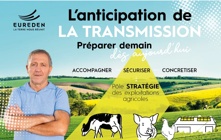 Après s’être engagée en faveur du renouvellement des générations (renforcement des aides à l’installation avec la revalorisation des Passeports JA (10 millions d’euros d’aides JA sur 5 ans), consolidation du Pôle Stratégie des exploitations agricoles avec le recrutement d’un juriste/fiscaliste et d’un nouvel expert en production porcine, mise en place d’une agence immobilière spécialisée (Repriz’Agri)), Eureden complète son accompagnement et s’engage aujourd’hui sur la voie de l’anticipation de la transmission.