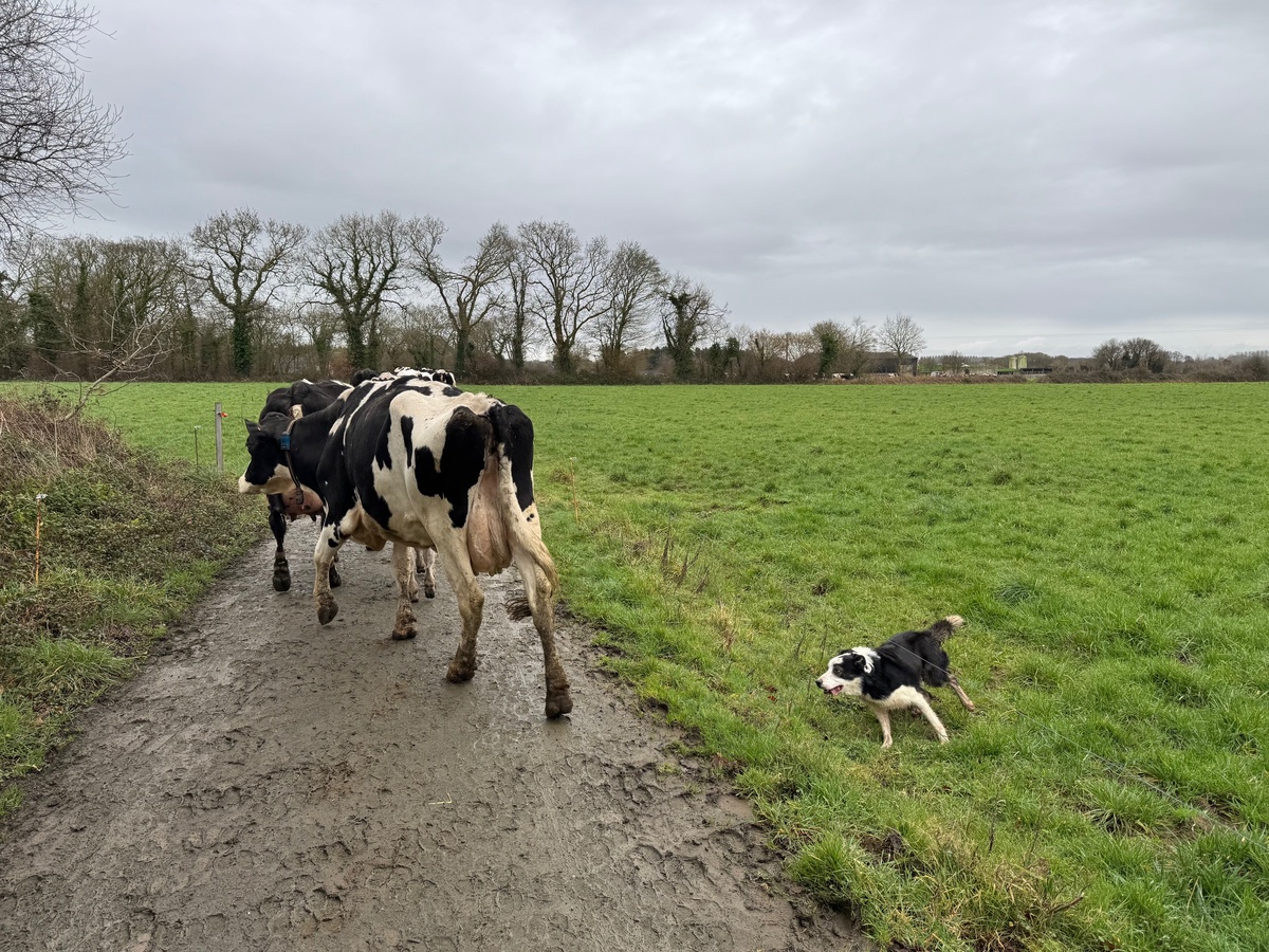 Le chien vient aussi en appui « pour les mouvements entre bâtiments », par exemple pour sortir du troupeau les taries ou intégrer des génisses prêtes à vêler. Ponctuellement, quand une génisse a sauté une clôture ou que le troupeau est entré dans le mauvais paddock, le chien permet de régler le problème en deux coups de cuillères à pot. « En élevage laitier, on déplace souvent les bovins. Pourtant, vu le bénéfice apporté, assez peu d’éleveurs ont un chien », note Charles Lecomte. « Aujourd’hui, quand il n’est pas avec moi, il me manque un truc. »