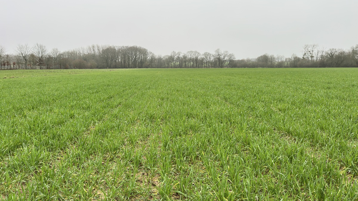 Comme pour le reste de la Bretagne, la pluie n’a pas épargné la commune. En Ille-et-Vilaine, le cumul des précipitations depuis le 1er janvier 2026 est de 216 mm, soit un écart de 129 mm par rapport à la période 1997-2022 (source Info Climat). « Malgré cela, il n’y a pas beaucoup de zones jaunies dans la parcelle, qui est pourtant assez humide. L’année dernière, dans un champ semé avec les mêmes variétés et avec un type de sol similaire (argilo-limoneux), le blé peinait davantage. »
