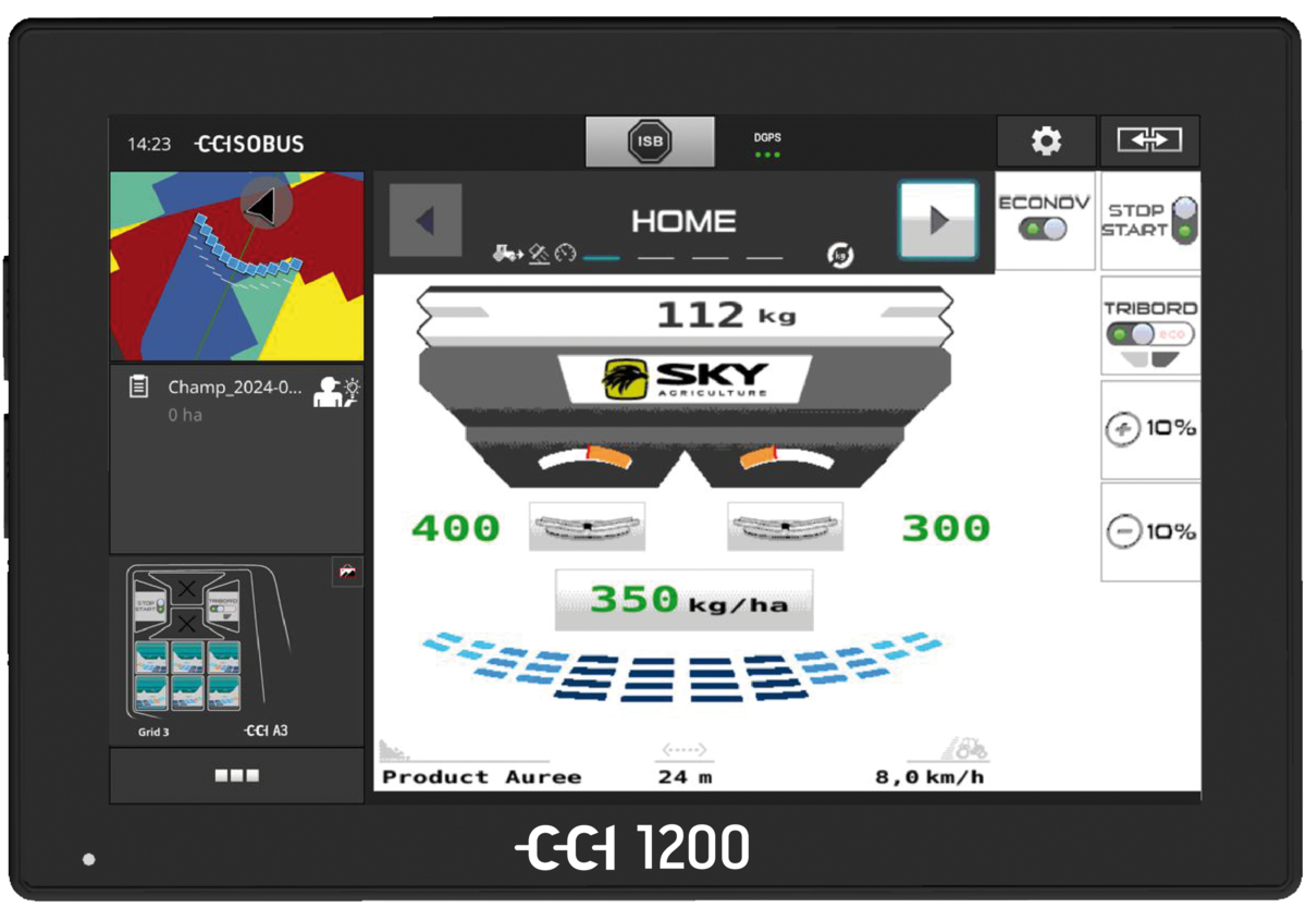 Même sans épandeur compatible Isobus, des solutions existent pour moduler. Il est possible d’ajuster la dose manuellement en s’appuyant sur une carte affichée sur la console de guidage ou sur une application mobile (Atfarm, Spotifarm). Des kits de rétrofit permettent aussi de rendre un épandeur Isobus, comme la solution Jaltest. Les constructeurs d’épandeurs proposent également des conversions électroniques ou l’ajout de passerelles de communication. Enfin, même sans Isobus, de nombreux boîtiers acceptent les consignes de modulation via une liaison série (RS232) depuis une console de guidage. Le pilotage peut aussi se faire sans cette dernière, à l’aide d’une tablette reliée au boîtier de l’épandeur, avec des solutions comme iSoyl ou Softidose.