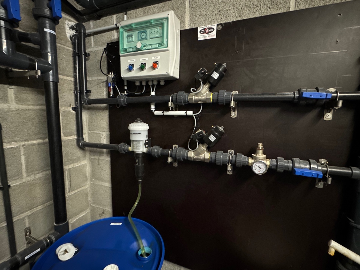 Damien Boudard a donc voulu automatiser la gestion de son pédiluve. N’ayant pas été convaincu par les solutions du marché découvertes en vidéo, (« trop de capteurs, des matériaux trop légers… »), le Costarmoricain s’est tourné vers ses interlocuteurs locaux. Stéphane Renault, de CS Élec (électricité et équipements en élevage), et Maximilien Rault, de RM Soudure (chaudronnerie), à Hénansal, ont alors dessiné les contours d’un outil répondant à ses attentes. Il a été installé en début d’automne 2025. « Conçu en tôle épaisse, il est robuste. Relié à une pompe doseuse, son remplissage est géré sans manipulation de produit. Son activité est commandée par un simple système d’horlogerie », explique l’éleveur. « Chez moi, pour garantir la propreté de la solution désinfectante, pour le moment, il se vidange et renouvelle le bain toutes les heures. Vu le temps de traite moyen d’environ 8 minutes aux robots, cela correspond au passage de 14 ou 15 vaches. » Grâce au traitement collectif devenu vraiment régulier, le producteur de lait comme son pédicure ont rapidement noté une amélioration de la santé des onglons mais aussi du couchage en logettes. Autre indicateur : « Malgré un effectif un peu trop important de 120 vaches sur les deux stalles suite au passage de la FCO, il y a désormais peu d’animaux en retard de traite. »