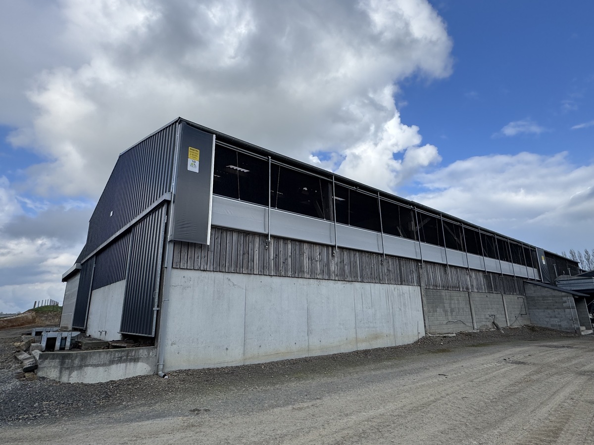 Bien embêtés, les associés ont imaginé ouvrir les bardages sur 40 cm en haut du long pan bardé (une zone située 5 m au-dessus des vaches dans ce bâtiment haut). « Nous avons discuté avec notre charpentier qui a soumis l’idée d’ouvrir bien plus grand. » Finalement, en partenariat avec la société Réa Agrouest, 32 m de long pan au sud-ouest (au-dessus d’une partie des logettes des vaches) ont été ouverts et équipés d’un filet escamotable sur 3 m de hauteur, en juin 2024. Sur le reste de la longueur, une ouverture de 50 cm en haut du bardage a simplement été pratiquée car le bâtiment du bloc traite accolé ne permettait pas la grande entrée d’air. De l’autre côté, au nord-est, le bardage fixe a été remplacé sur 85 m par un brise-vent motorisé. La gestion du flux d’air se fait par commande manuelle. « À la belle saison, on ouvre grand pour bien renouveler l’air et rafraîchir les animaux. En hiver, on limite à 50 cm l’ouverture pour éviter les courants d’air sur nos jeunes génisses logées en face des vaches. »