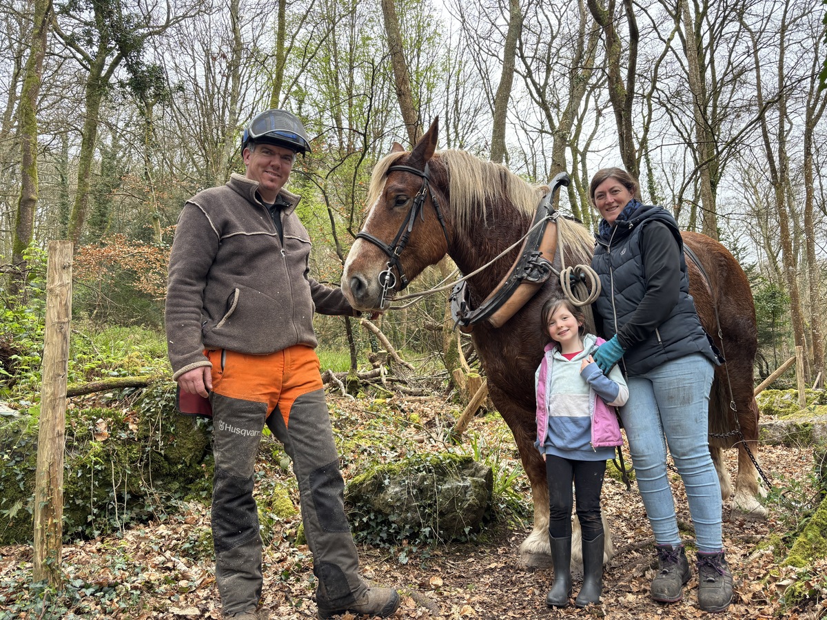 Qu’il est agréable en ce début de printemps de se balader à proximité du Rocher de l’impératrice, à Plougastel-Daoulas (29). Ce petit bois laisse par moment apparaître à travers les feuilles de ses arbres le pont de l’Iroise puis, plus au fond du paysage, l’immensité de la mer et de la rade de Brest. Soudain, une masse vivante apparaît. Silencieusement mais avec une force impressionnante qui fait se reculer d’un pas, un cheval tire un tronc, se faufile habilement et disparaît avec sa meneuse. Un chantier de débardage est en cours, les stigmates toujours présents du passage de la tempête Ciaran sont encore là. Il faut rendre à l’endroit son aspect d’origine, sécuriser les lieux. Ce travail est l’œuvre de la famille Séité, débardeurs de métier, installée à Plouigneau (29). Pour le labeur du jour, Anne-Louise mène tranquillement J’Viens du paradis, nom de ce cheval de race Trait breton. Cela ne s’invente pas, l’animal bienheureux affiche ses origines célestes.